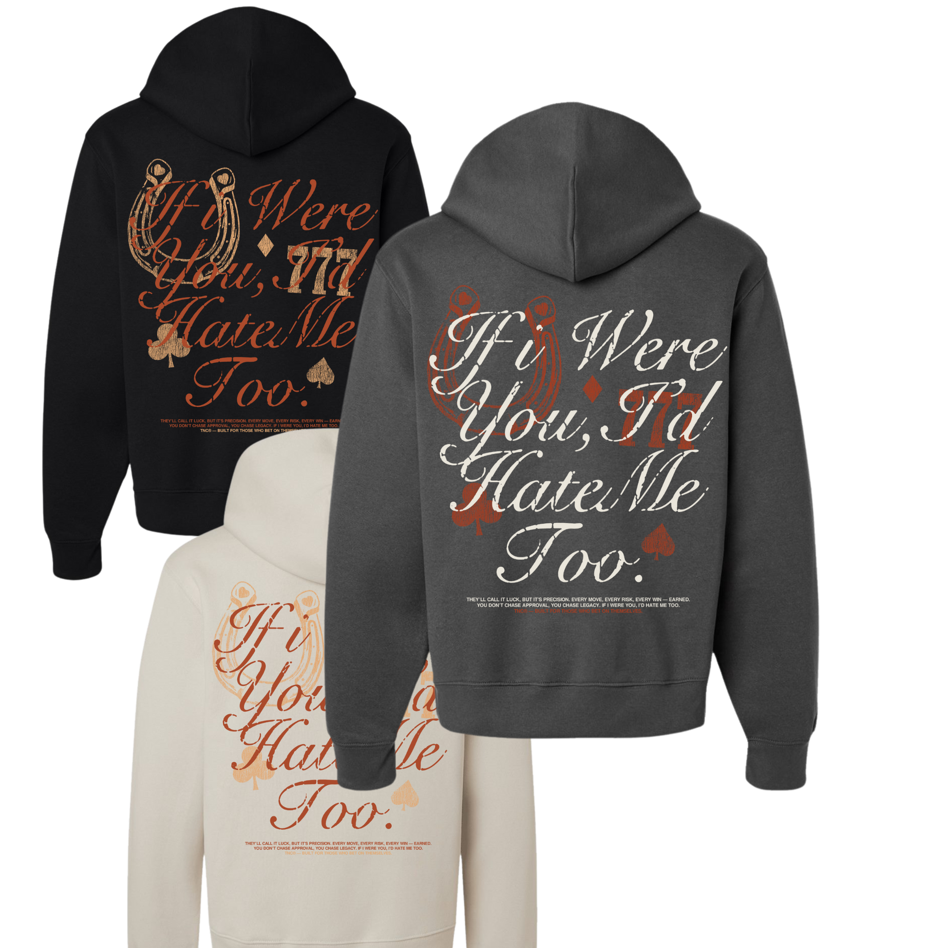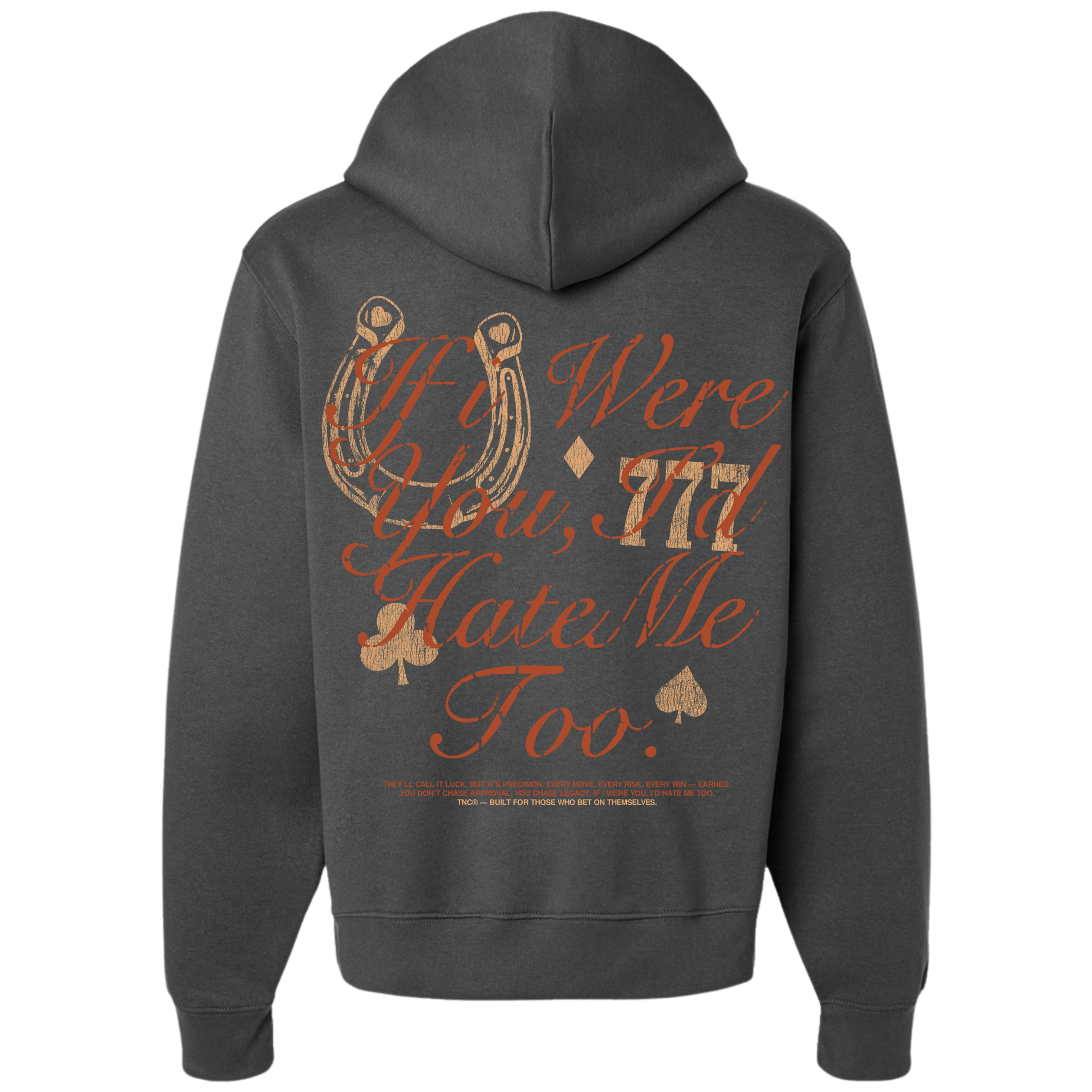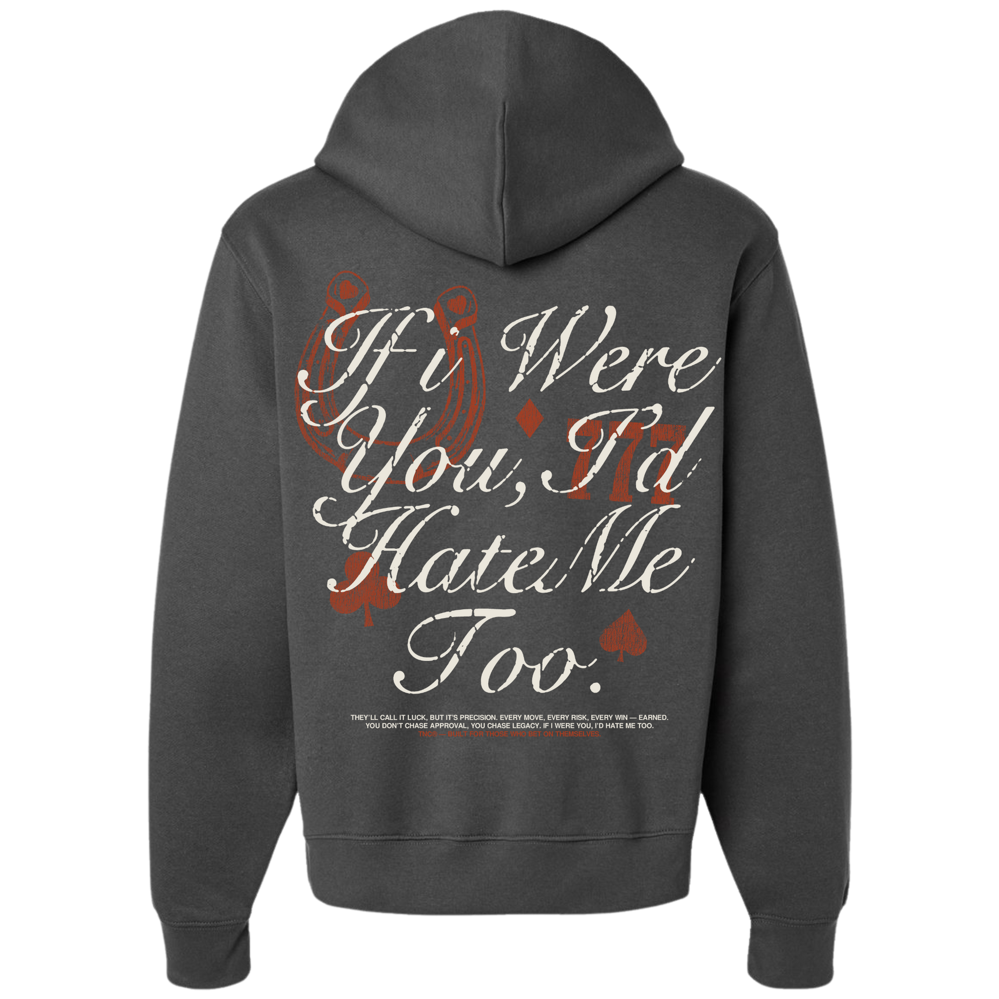 Surrounded by playing card suits and a distressed Western-style type treatment, this design speaks directly to anyone who’s ever been doubted, copied, overlooked, or underestimated.