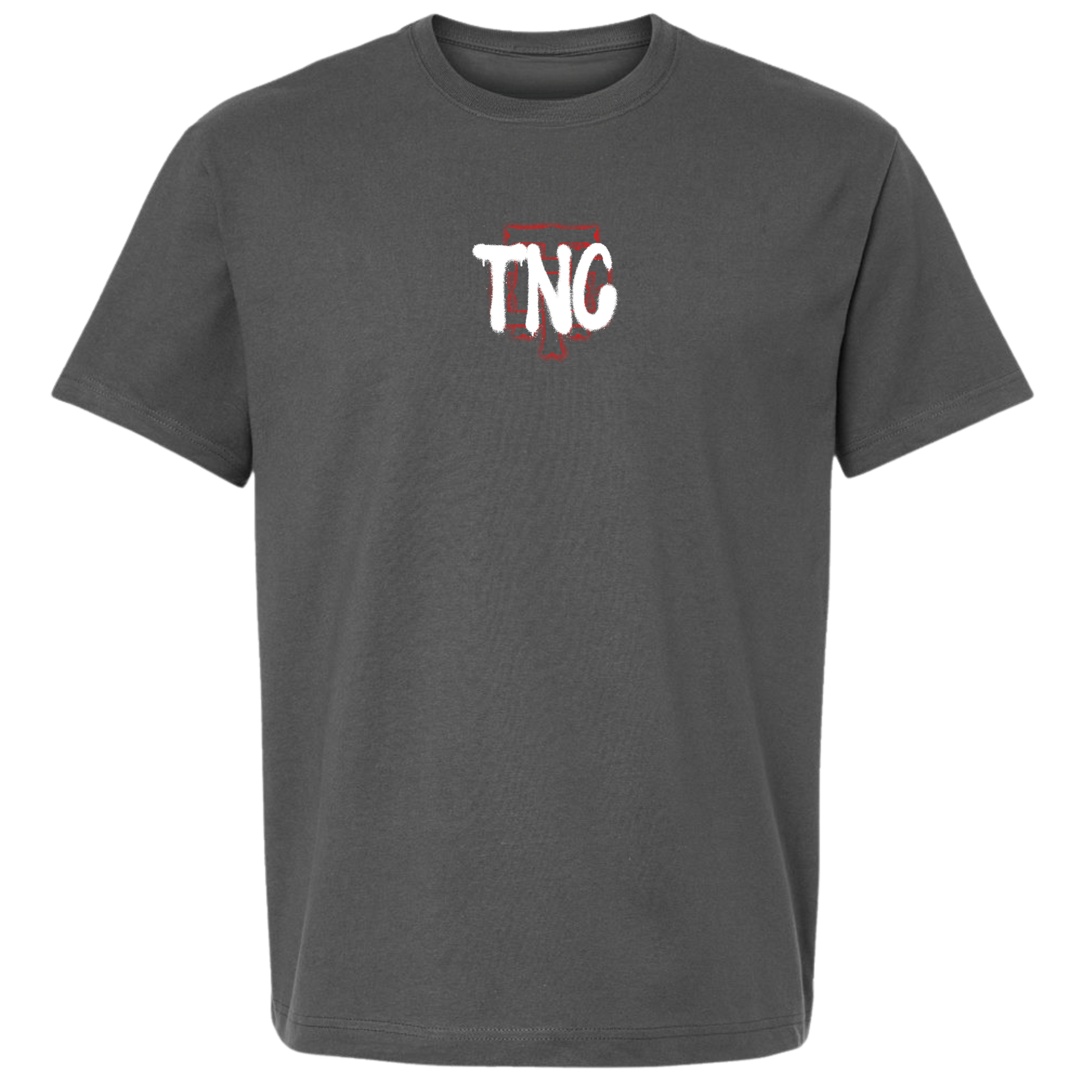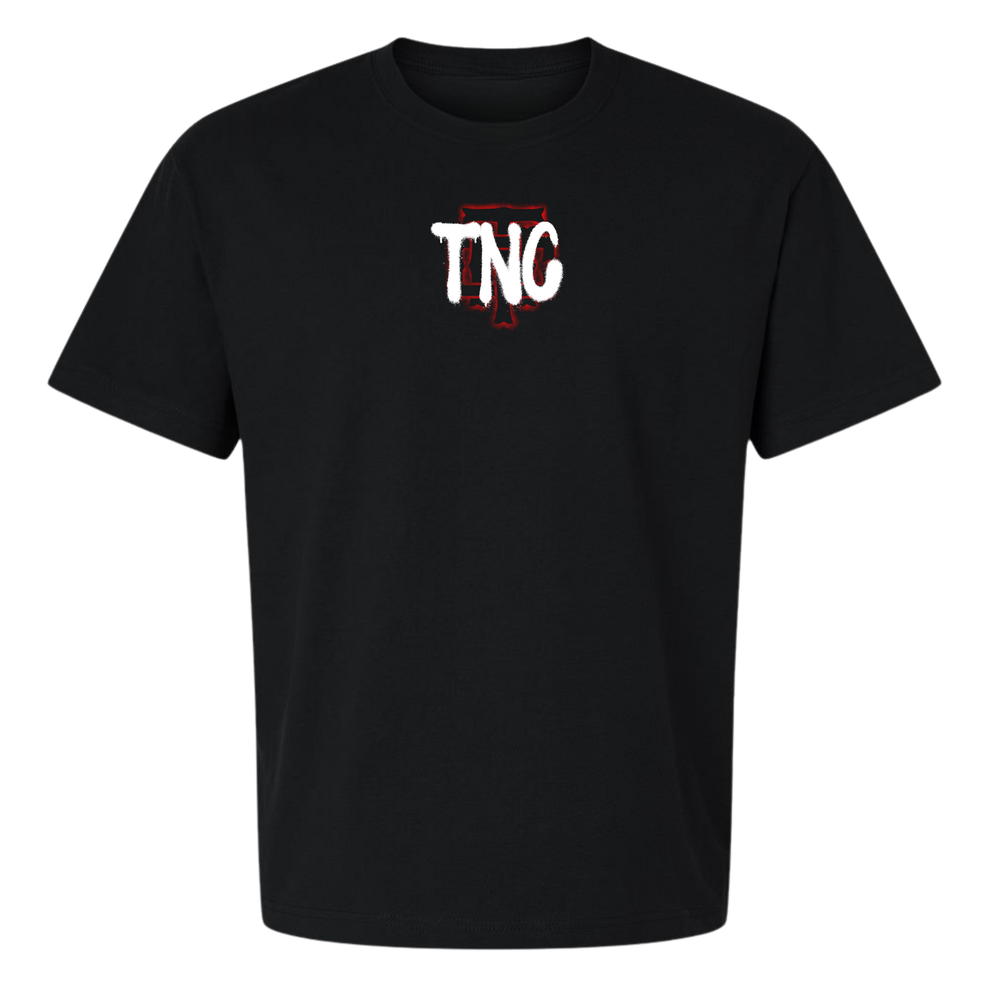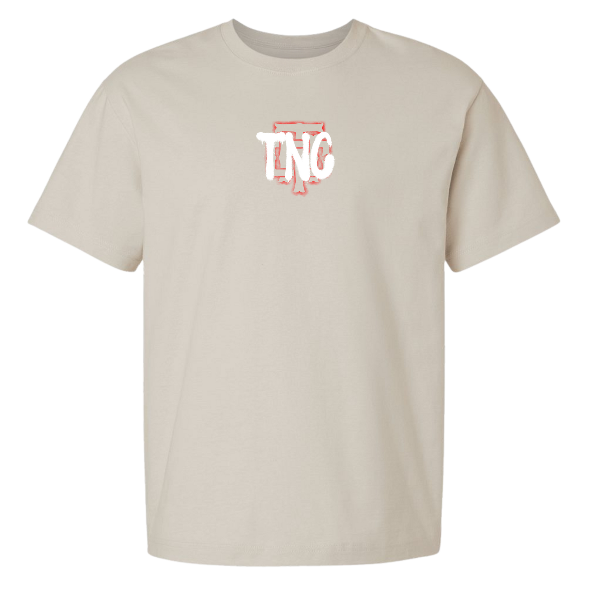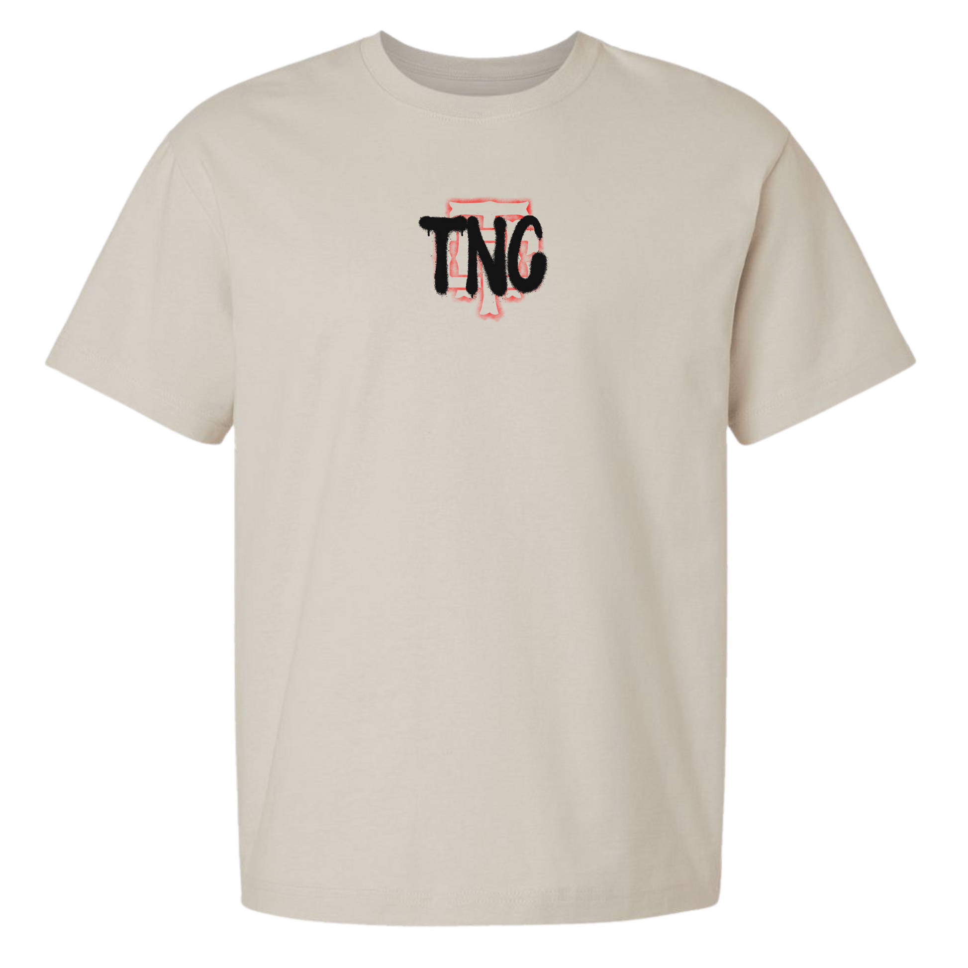 The front keeps it clean with a graffiti-style TNC hit layered over a bold red stencil, giving it that raw, earned aesthetic.