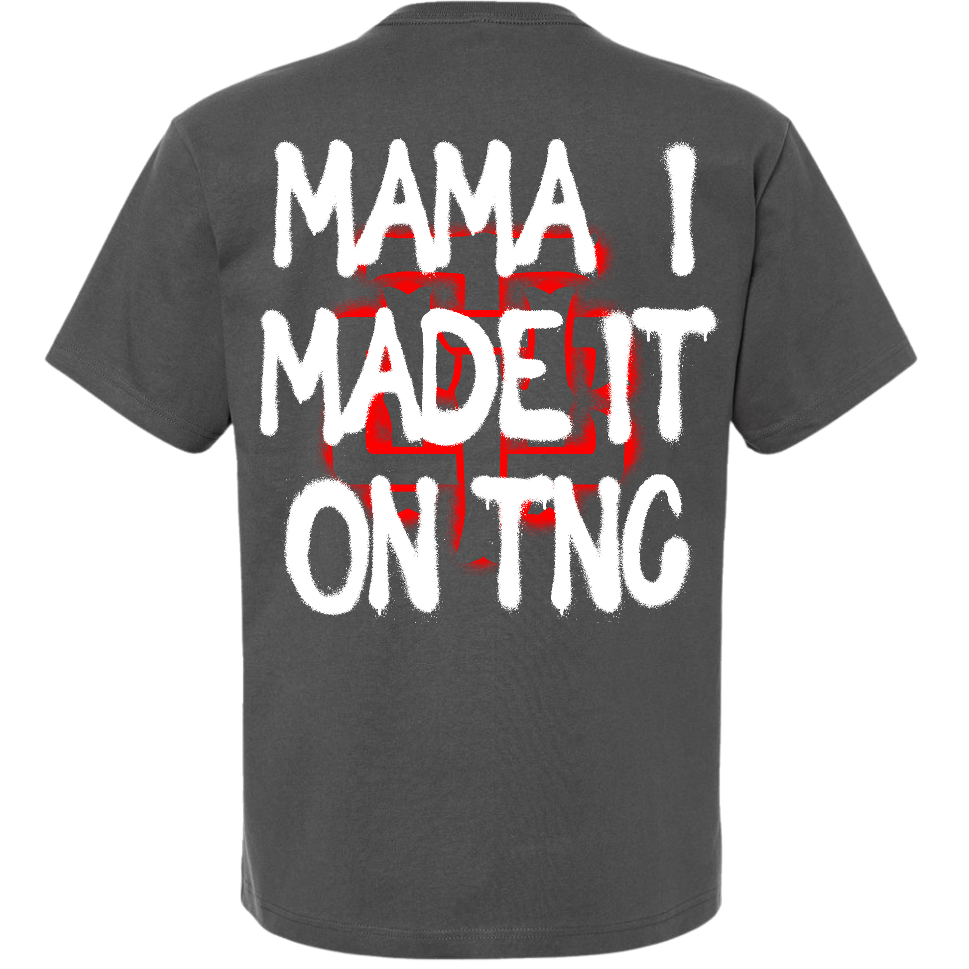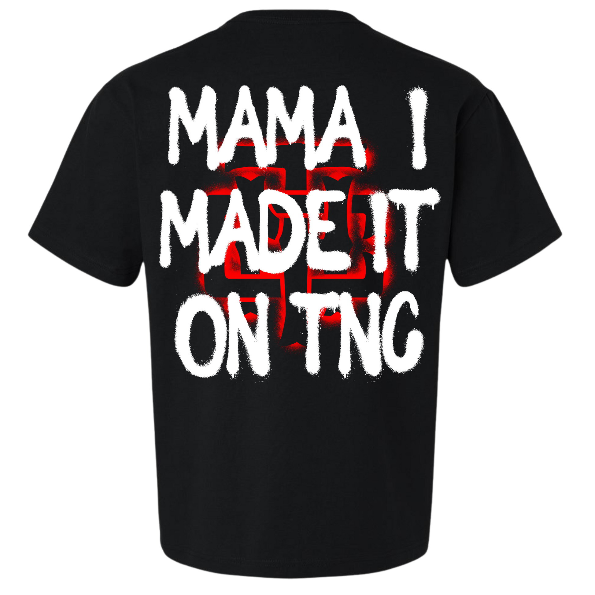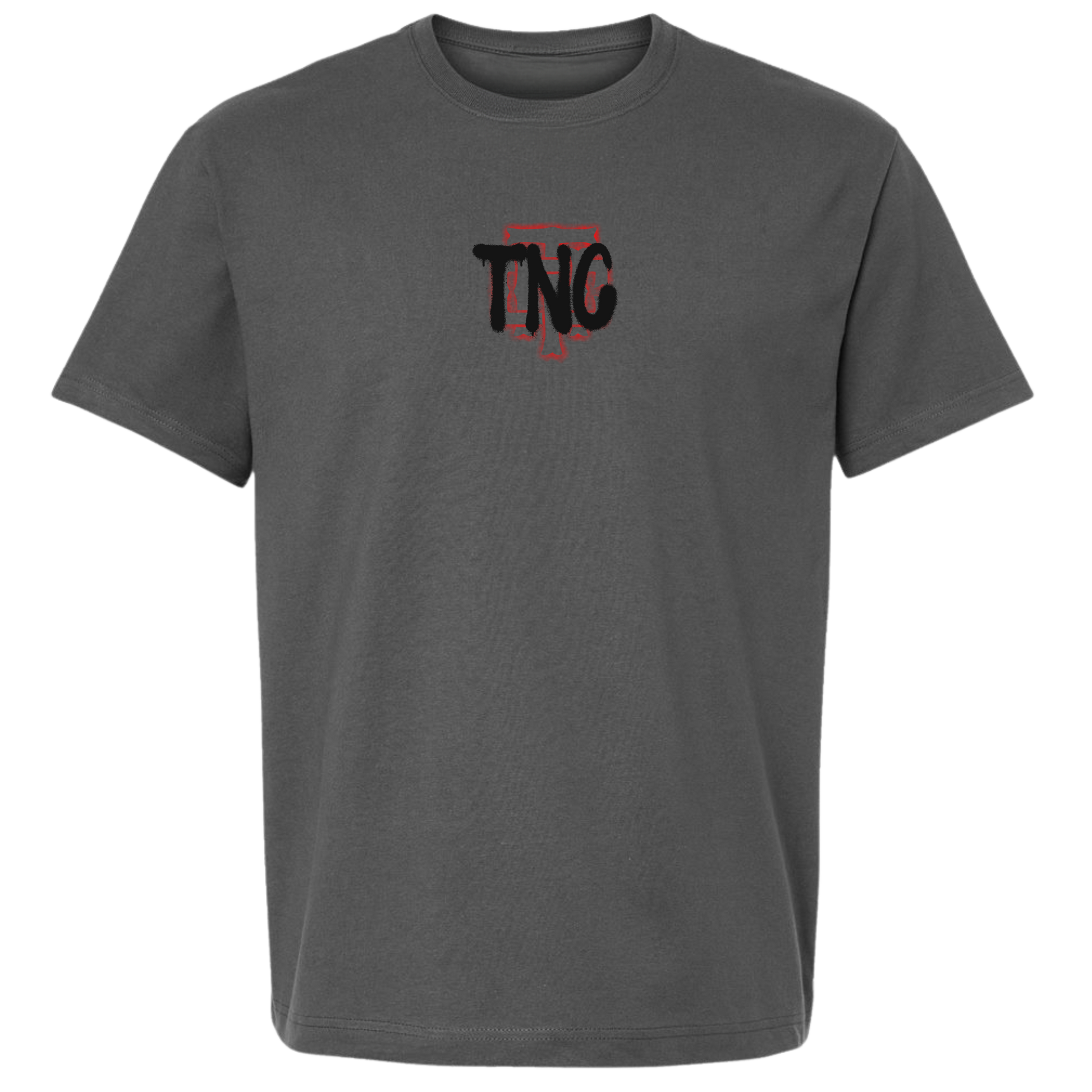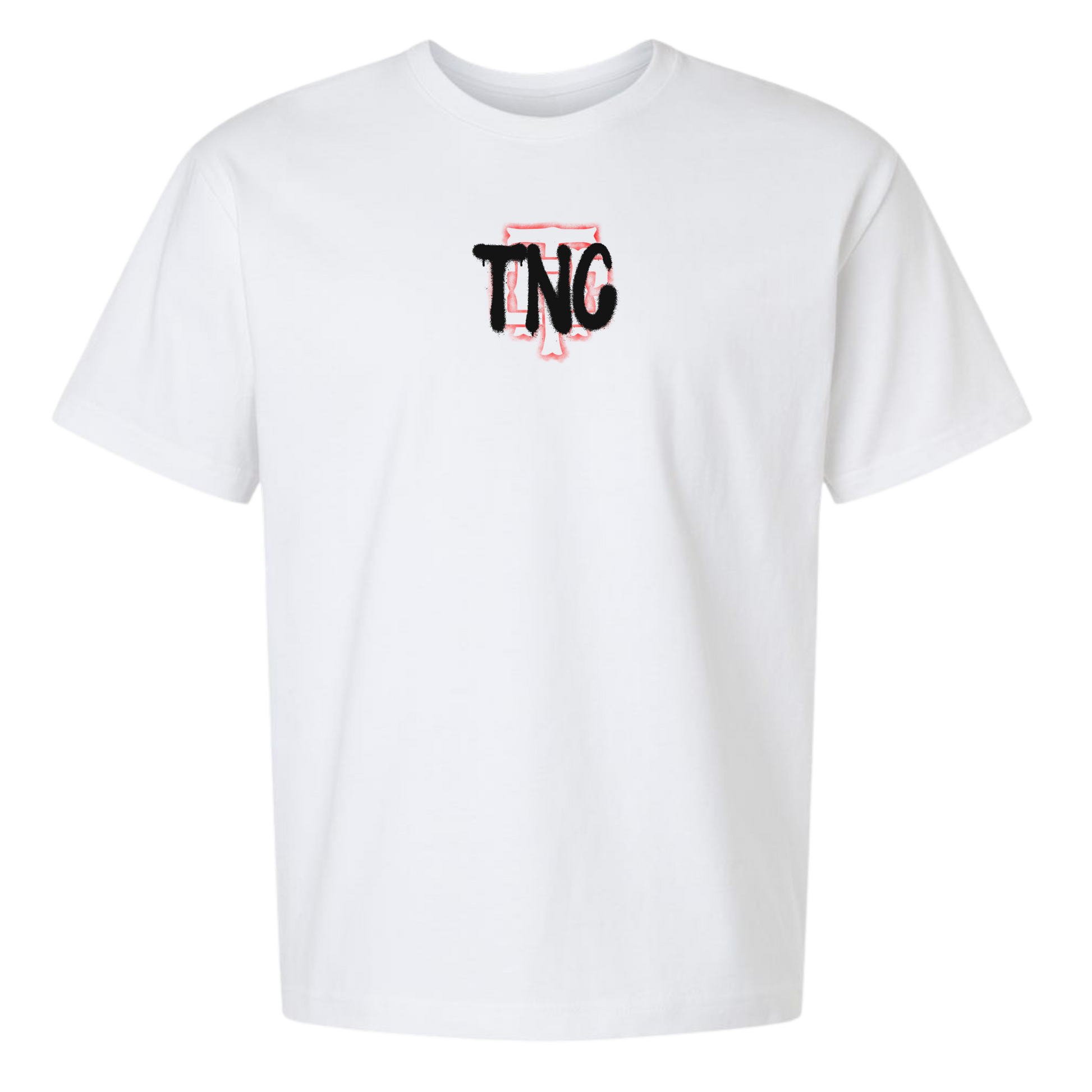 The front keeps it clean with a graffiti-style TNC hit layered over a bold red stencil, giving it that raw, earned aesthetic.