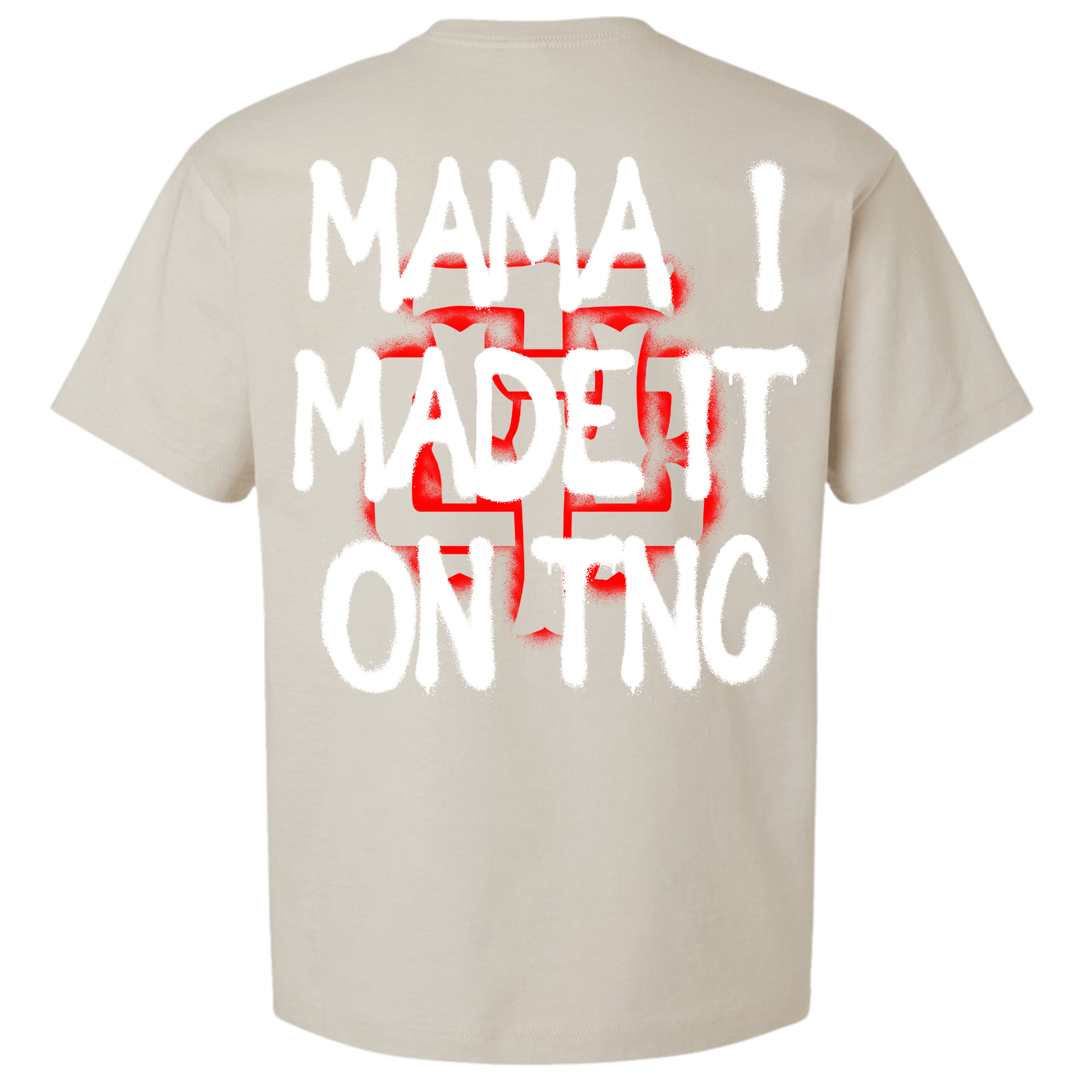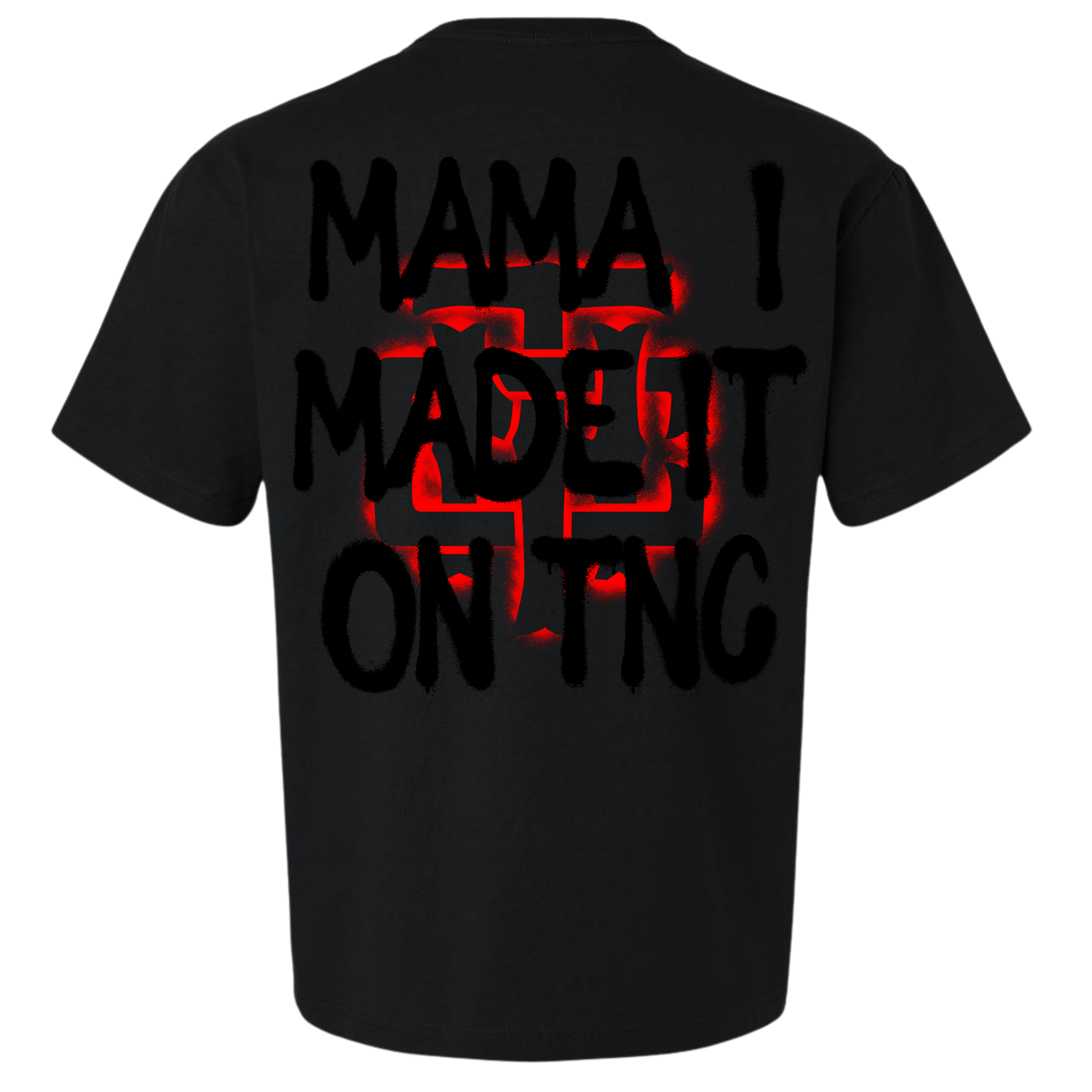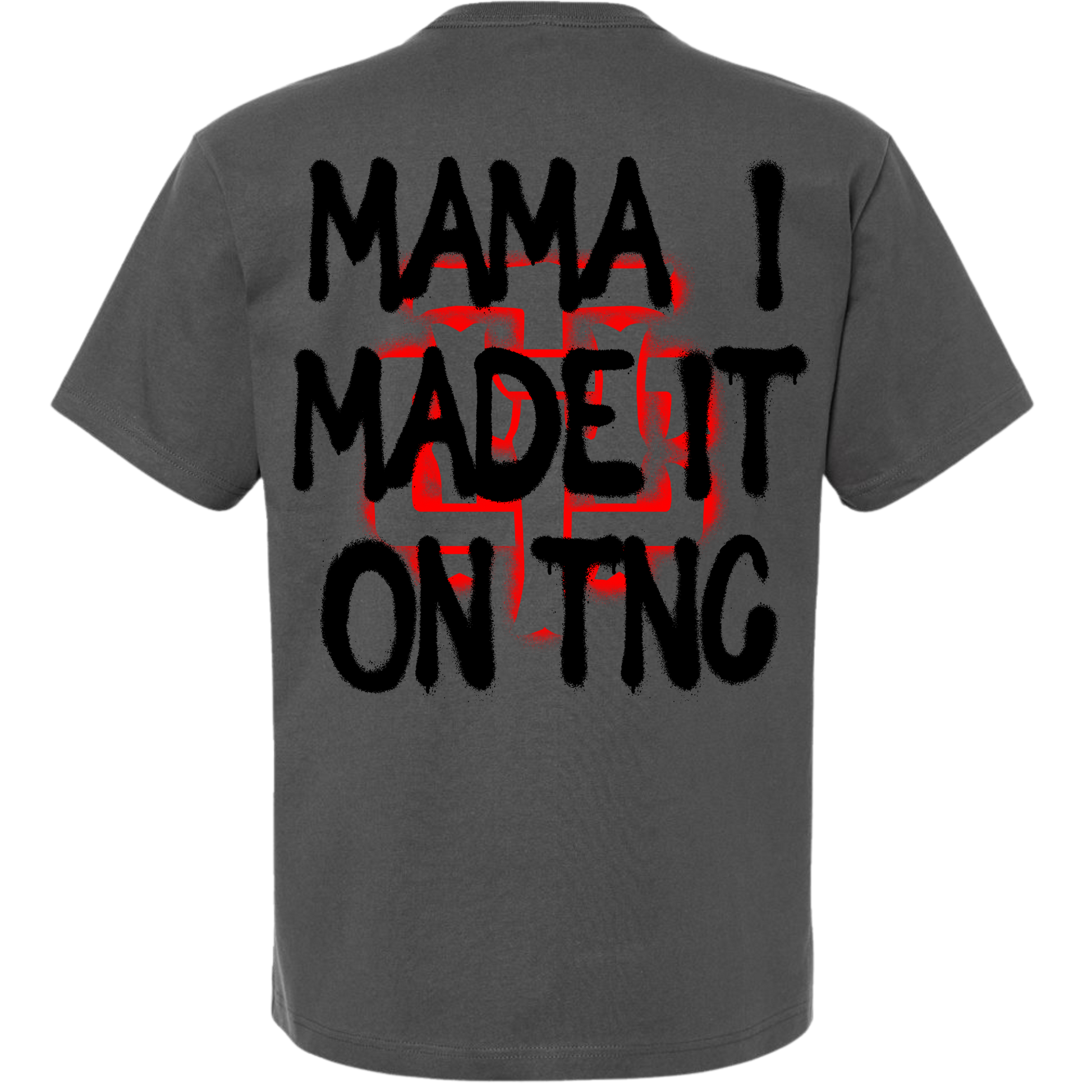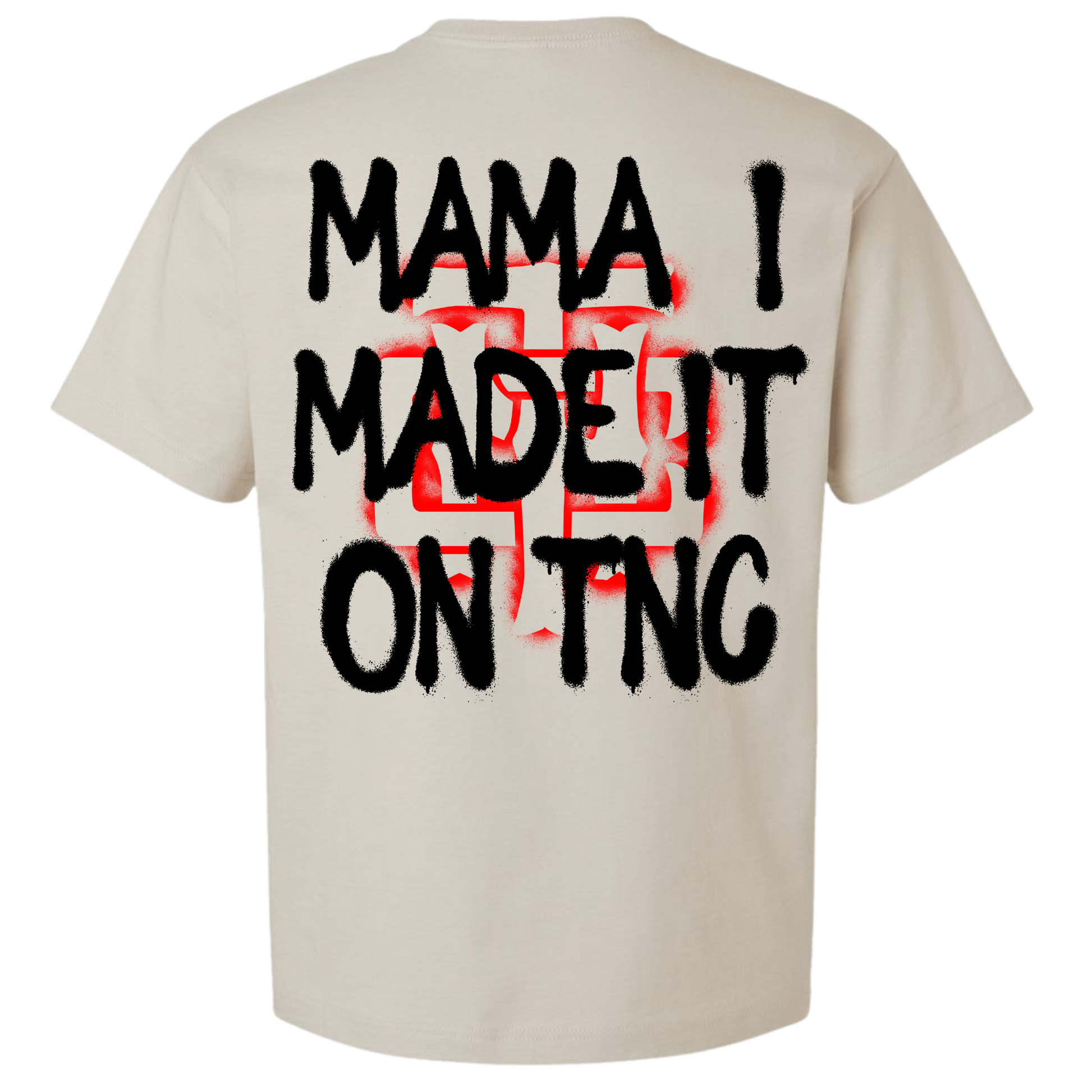 The front keeps it clean with a graffiti-style TNC hit layered over a bold red stencil, giving it that raw, earned aesthetic.